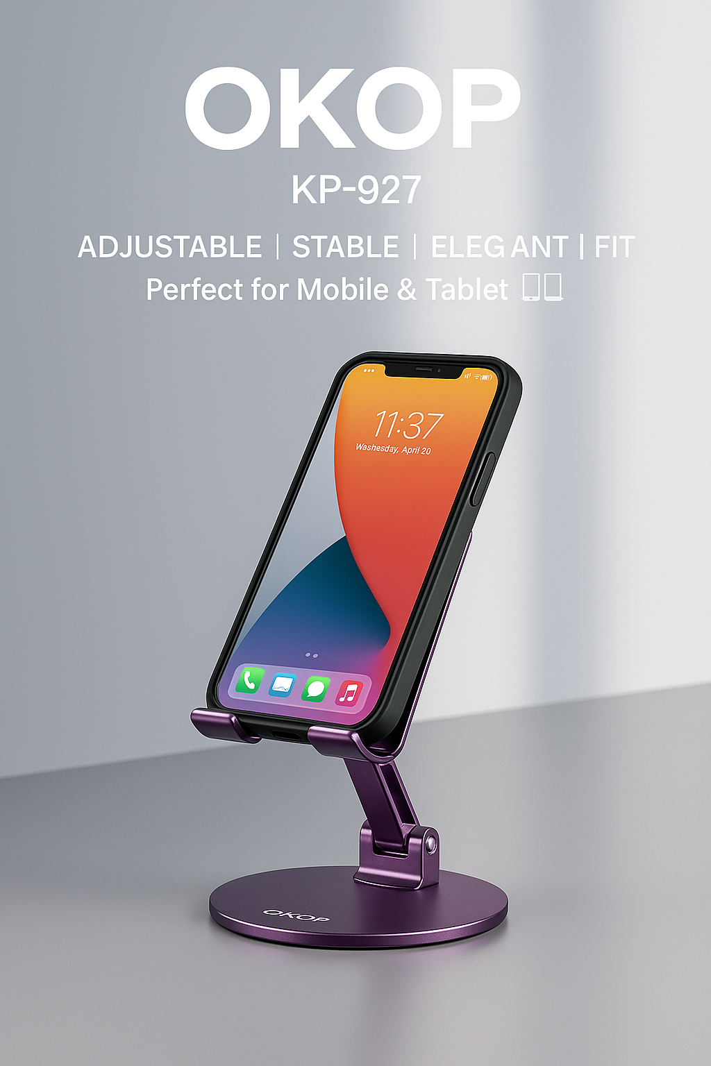 هولدر موبایل OKOP مدل KP-972 – پایهای هوشمند برای زندگی دیجیتال شما! با قابلیت تنظیم زاویه، سازگار با تمام موبایلها و تبلتها، و پایه ضدلغزش محکم. ایدهآل برای تماشای فیلم، کلاس آنلاین، ویدئوکال و مطالعه. طراحی جمعوجور و با دوام.